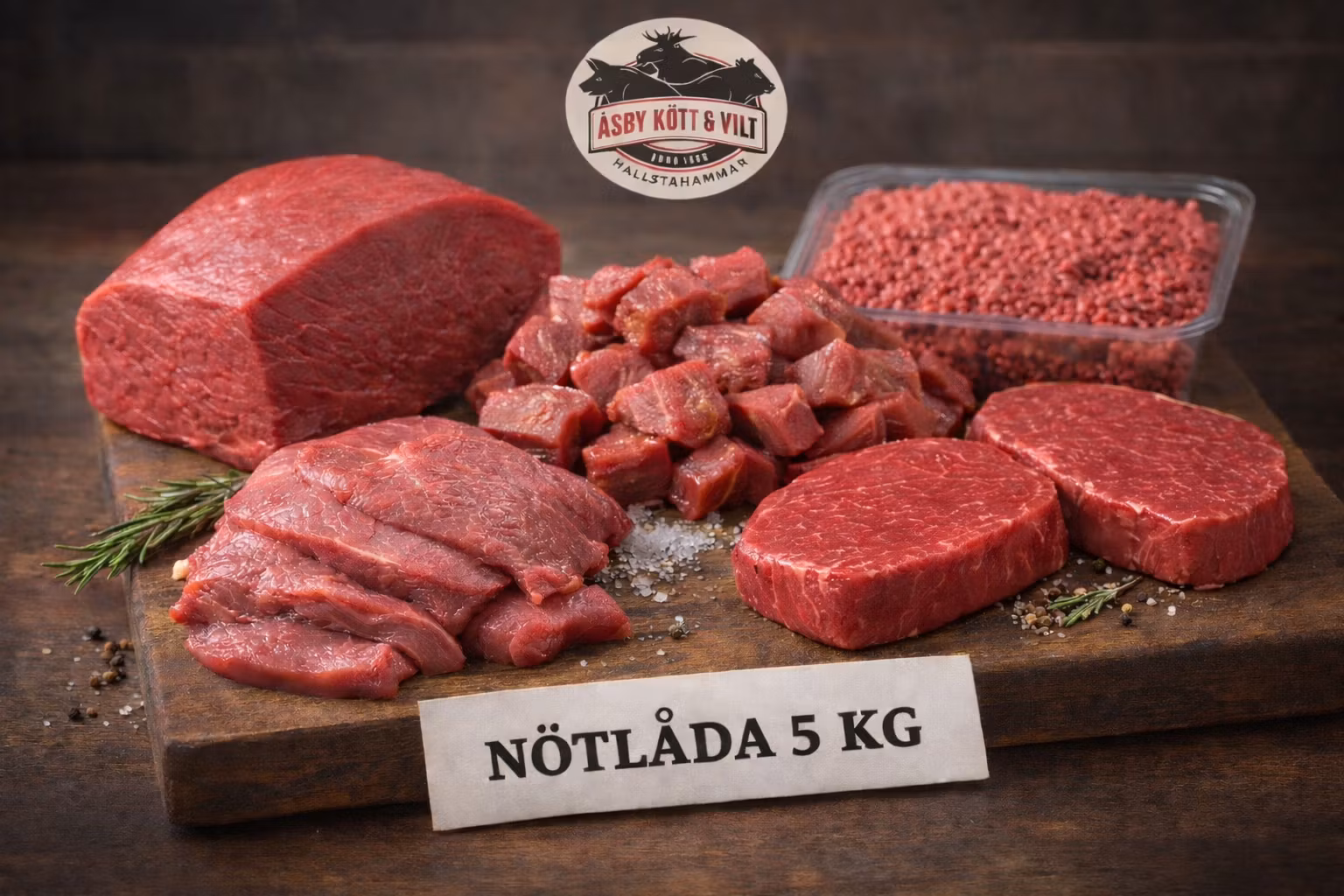 Nötlåda 5 kg 1 360 kr Lägg i korgen Artikelnummer: 27 Leverantör: Lådan innehåller kött från gårdar i Västmanland med omnejd:1,3 KG STEK1 KG GRYTBITAR0,7 KG RYGGBIFF0,5 KG LÖVBIFF1,5 KG NÖTFÄRS 100%Observera – de nämnda vikterna per produkt är cirkavikter. Totalvikten är dock alltid minst den angivna.